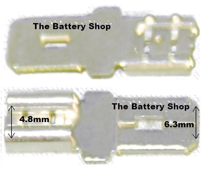 For example if used on a Yuasa NP7-12 which has 4.8mm wide terminals male spade terminals these converters will give you a 6.3mm wide male spade connection.